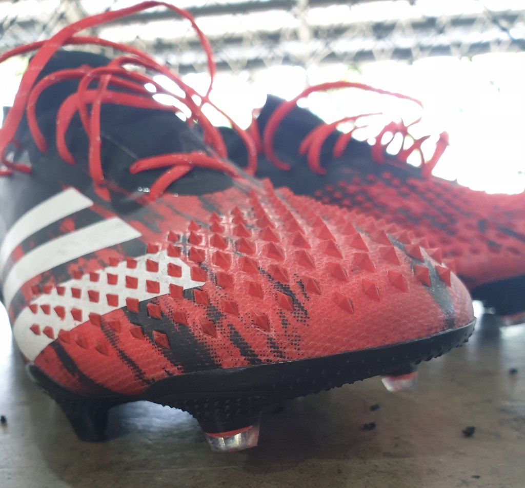 Touch-wise, the boot is a little big of a mixed-bag. Thanks to the grippy rubber elements, it takes awhile to adjust and get used to it. However, it does make it easier to control passes that have a little more spin to them. On the instep, it imparts a slight dampening effect for those harder passes, but when it comes to controlling balls with the forefoot, it does feel a little unnatural at first. It’s not a clean touch, as say the X19.1 or a padded touch like the Copa 20.1, but the Predator wasn’t built for that. My only gripe about the spikes is how annoying it sound in wet weather and how the ball feels more slippery on the spikes. My theory is that the spikes mean that there’s a small surface area of the boot interacting with the ball and thus lesser grip. But these are all very minor issues compared to what the spikes bring to the table, the Demonskin is the real deal and adidas really deserves a lot of props for that.