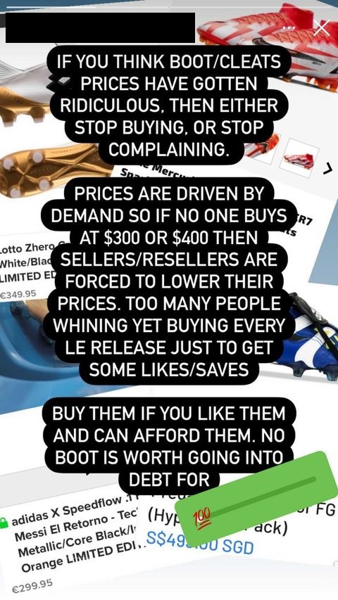 As for the fact that limited-edition boots are still selling out, like the Predator Remakes, it is dishonest to suggest that they are selling out because they are being bought by the average joe. It is easy to disprove this when everybody has seen multiple resellers buy up a lot of stock to sell themselves later at higher prices. They are manipulating the market when they are doing this.