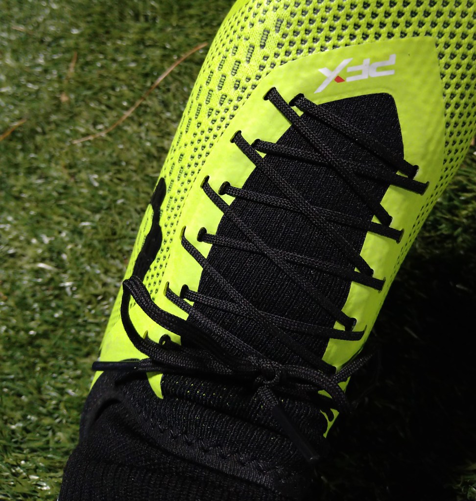 Out of the box the knit upper is softer than expected and pliable. Rather than having a smooth surface on the upper, there is a slight grippy silicon layer on top of the knit. While the design makes the PFX Gignac seem more like something from the speed category, the soleplate is more flexible than others. Instead of being a negative thing, this means that the boot is easier to break in and the foot does not have to get “used to” the boot.