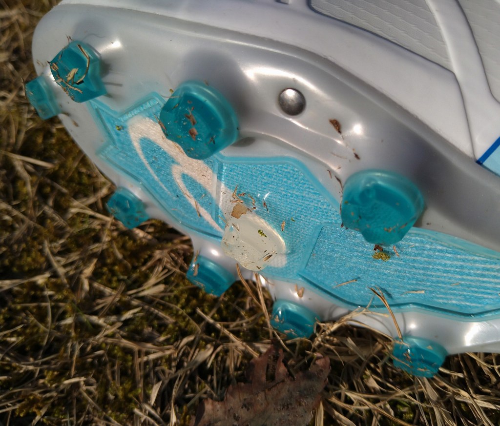 A key component for grip is the studs of course. And the shape and design of the “Accelerator Stud System” on the X Fly Pro are fantastic and are probably my favourite thing about the boot. No matter the surface, no matter the conditions, the studs gave tons of grip without preventing me from pivoting or making sharp cuts. This is where Mizuno falls behind with its Morelia Neo soleplate. The little indentations found on each stud on the X Fly Pro allows you to get grip in any direction.”