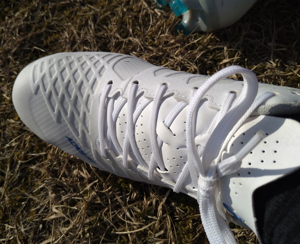 The thinner upper also means that like other speed boots, there is a nice ping when shooting the ball. Having that AcrosFit pattern does not mean it is that noticeable when hitting the ball. Maybe it is a placebo effect because of the raised AcrosFit cage, but it does feel like there is also a little bit extra added when hitting the ball in the boots. This means that striking the ball feels just that bit nicer than the typical synthetic speed boot.