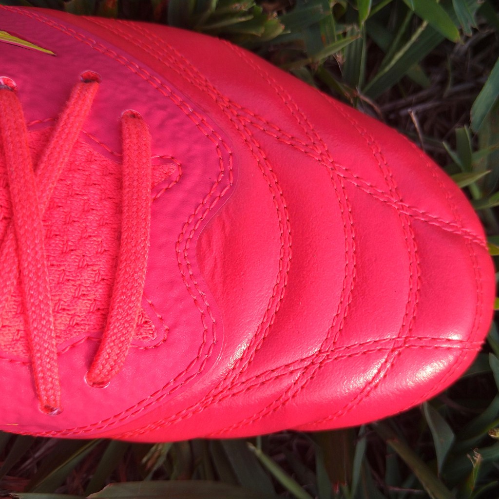 The leather is just thin enough to feel a pingy sensation when hitting the ball with power that one would normally expect from a synthetic boot. Yet, at the same time, the leather has just enough padding so that the foot does not feel the brunt of the force being put into the ball.
