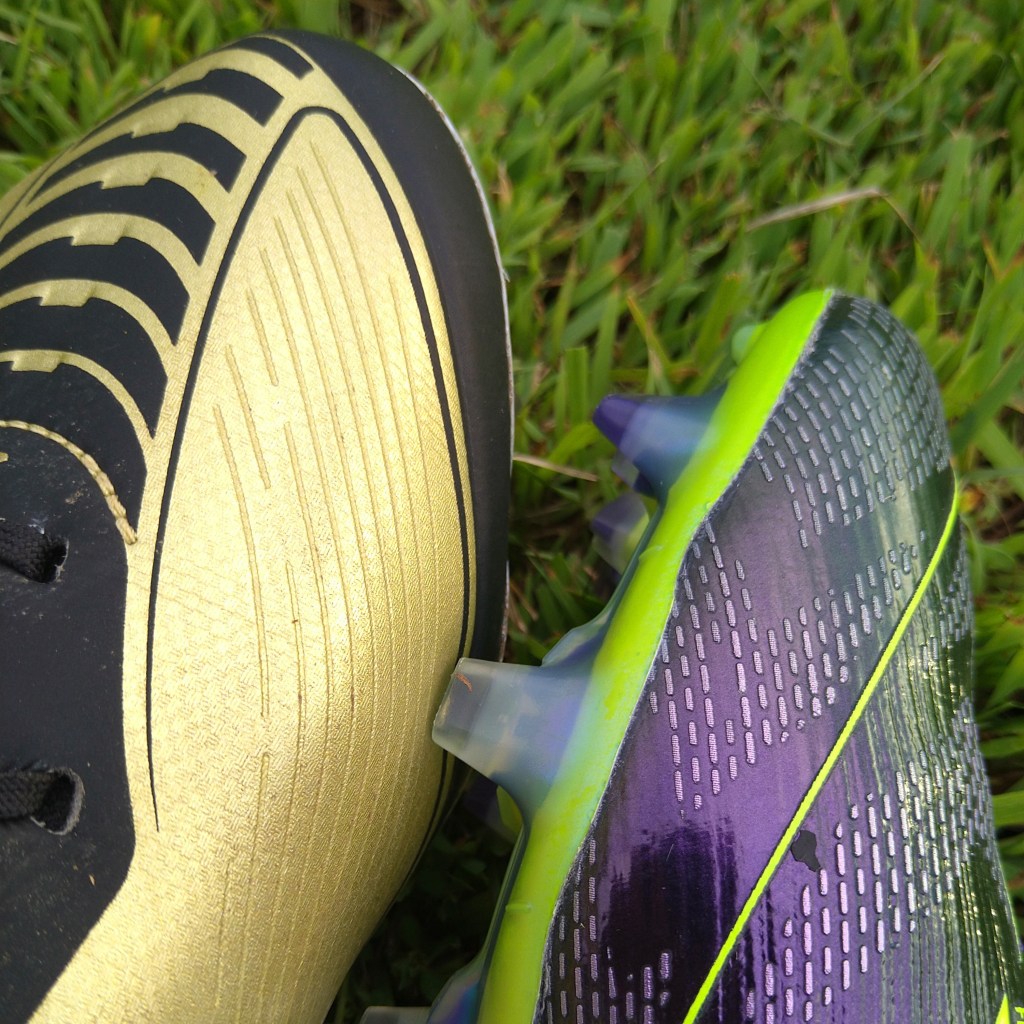 Another difference between the boots is that naturally the touch on the ball is different. Again, this is expected. The Fibertouch upper and the Sprintweb do provide a thinner a sharper touch on the ball and provides a pingy sensation when hitting the ball with power. The F50 Messi Hybridtouch 1.0 upper seems slightly thicker when it comes to the touch on the ball, but because the upper is so soft, it feels more natural. While there is not as much grip on the Messi model, it is still excellent in wet conditions as well, though again, not as grippy as the regular F50 Elite.