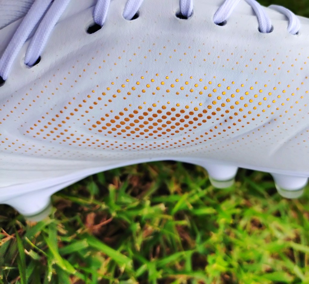Obviously, the showpiece of the Tekela is the ridiculously soft and pliable Dynamic TouchTech upper. It is very soft out of the box, and it is up there with the likes of Silkywrap from ASICS’ X Fly Pro 3 and X Fly 6. The Dynamic TouchTech is on the thinner side compared with ASICS’ two boots. The upper on the Tekela also has this nice leather-like grain to it. And to the touch there is a slight roughness to it, somewhat mimicking a worn leather. There are also these little dots in high contact areas that help provide a little bit of grip on the ball. It is a small detail,but helps accentuate the look of the Tekela to stop it from appearing too plain.