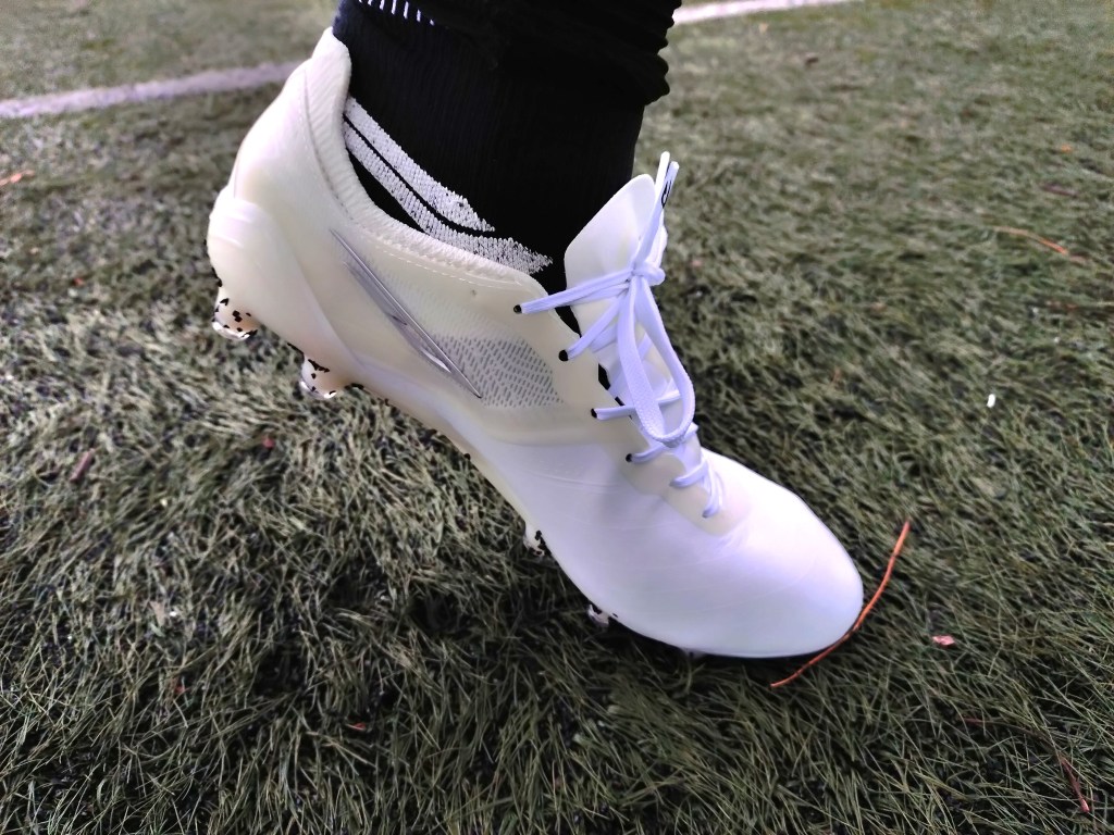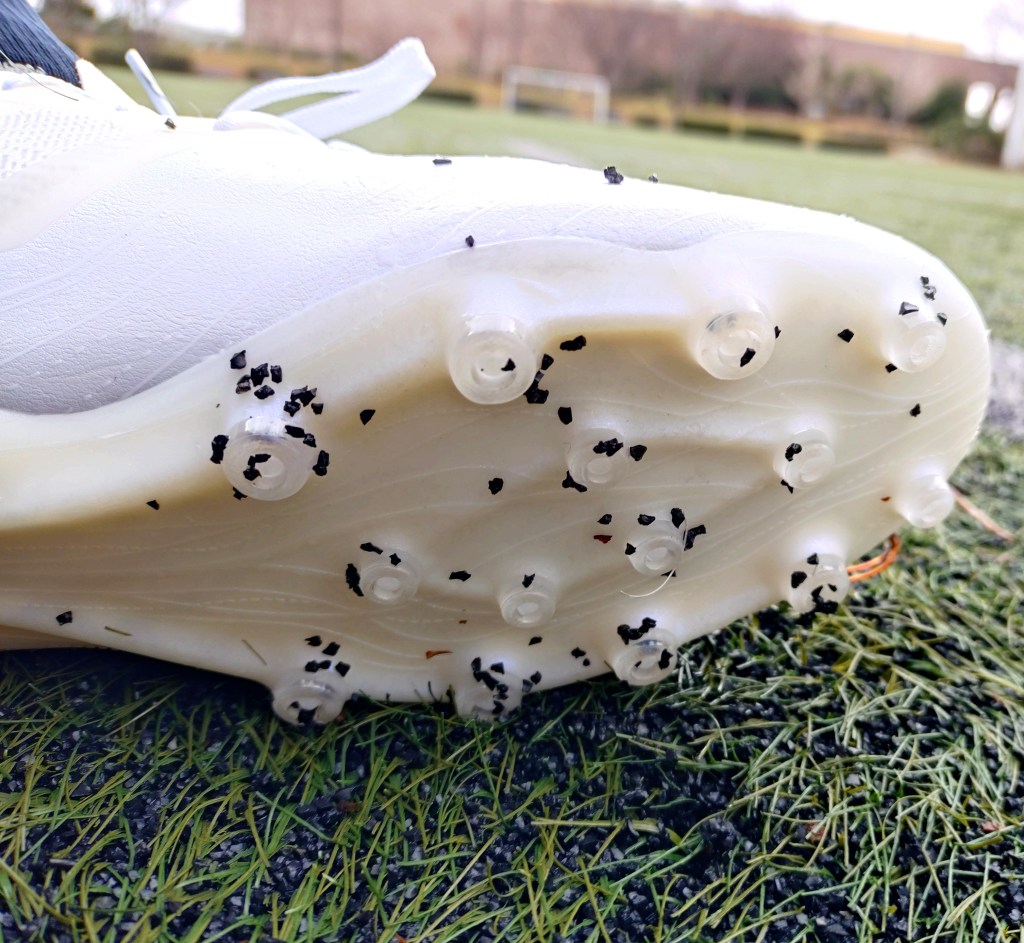 The first thing we need to talk about is the stud layout and studs themselves. There are fourteen studs overall on the forefoot, with the standard four on the heel. There are nine larger studs around the outer part of the forefoot, with five smaller ones in the middle of the forefoot. What is really nice about these studs is that they seem specifically designed for AG surfaces as even the larger studs are much shorter than most AG studs from much better brands.