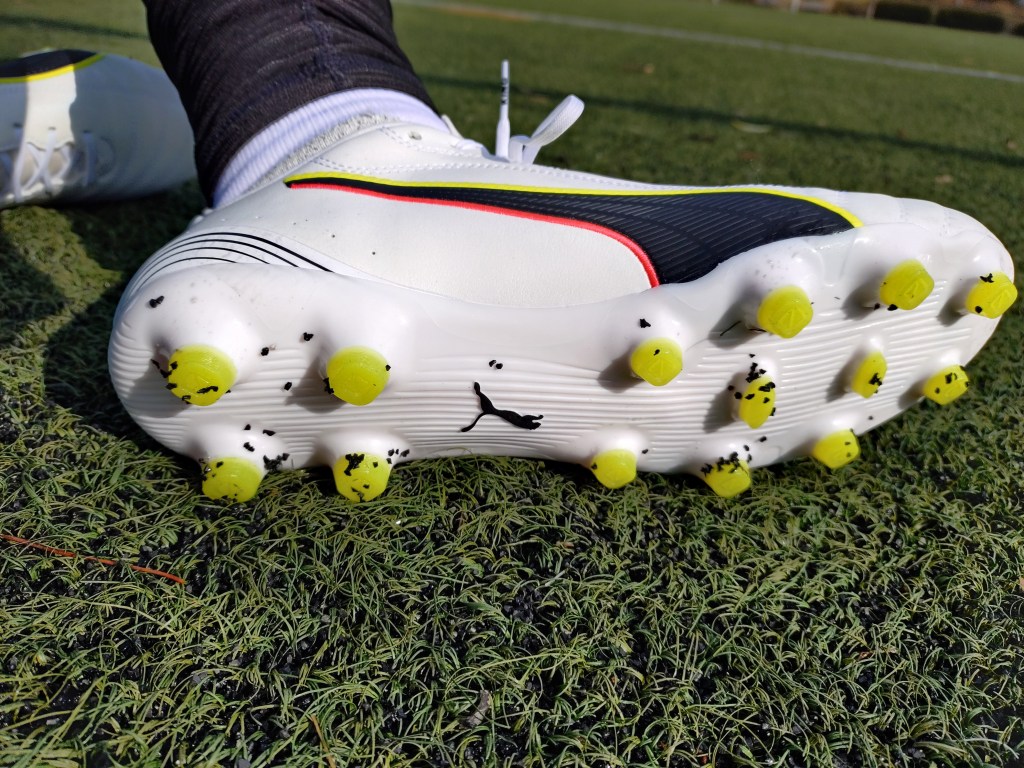No surprises here, as the soleplate is Puma’s standard hard ground soleplate. It is not complex or anything, but it has a nice, comfortable ride. The grip is good on AG and HG and even works decently well on hard firm ground surfaces. It is a multifunctional soleplate, but do not expect to go breaking any speed records in it.