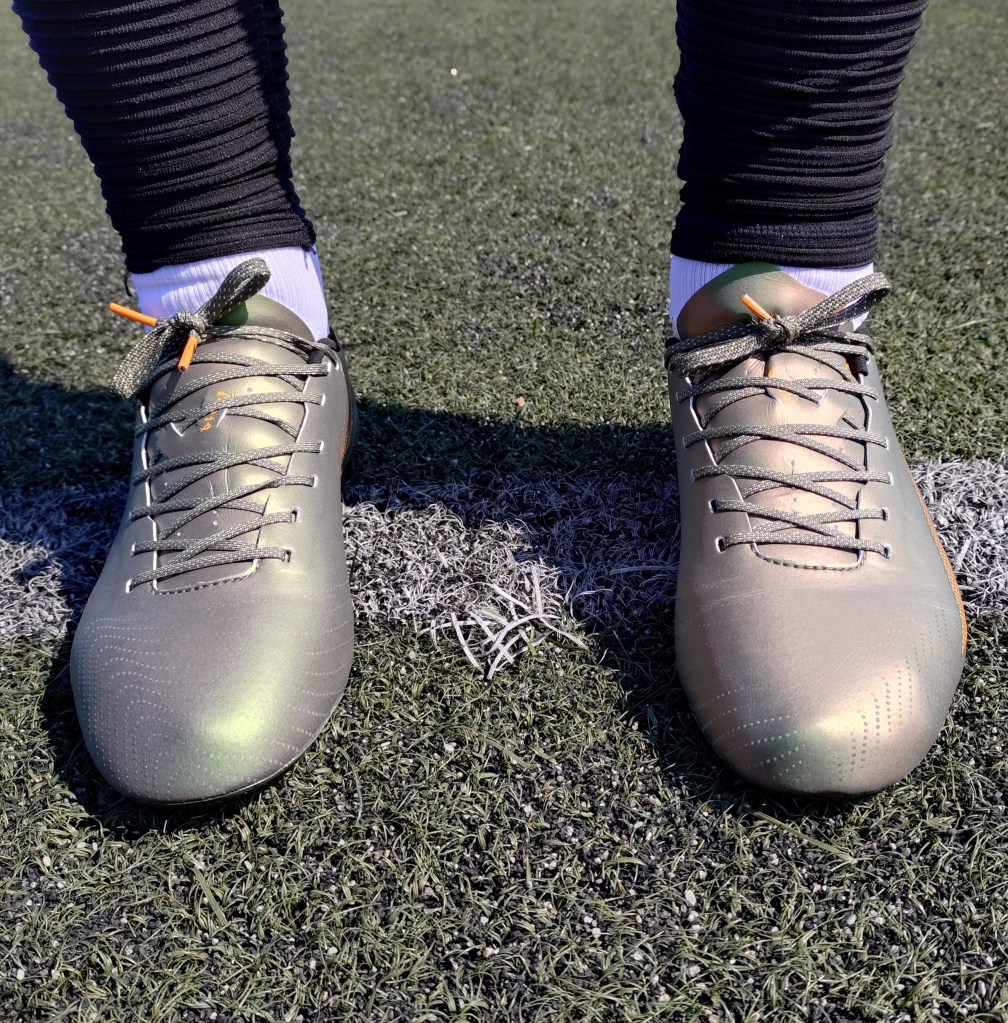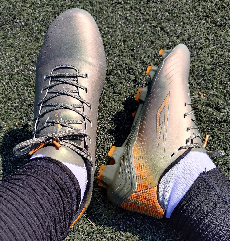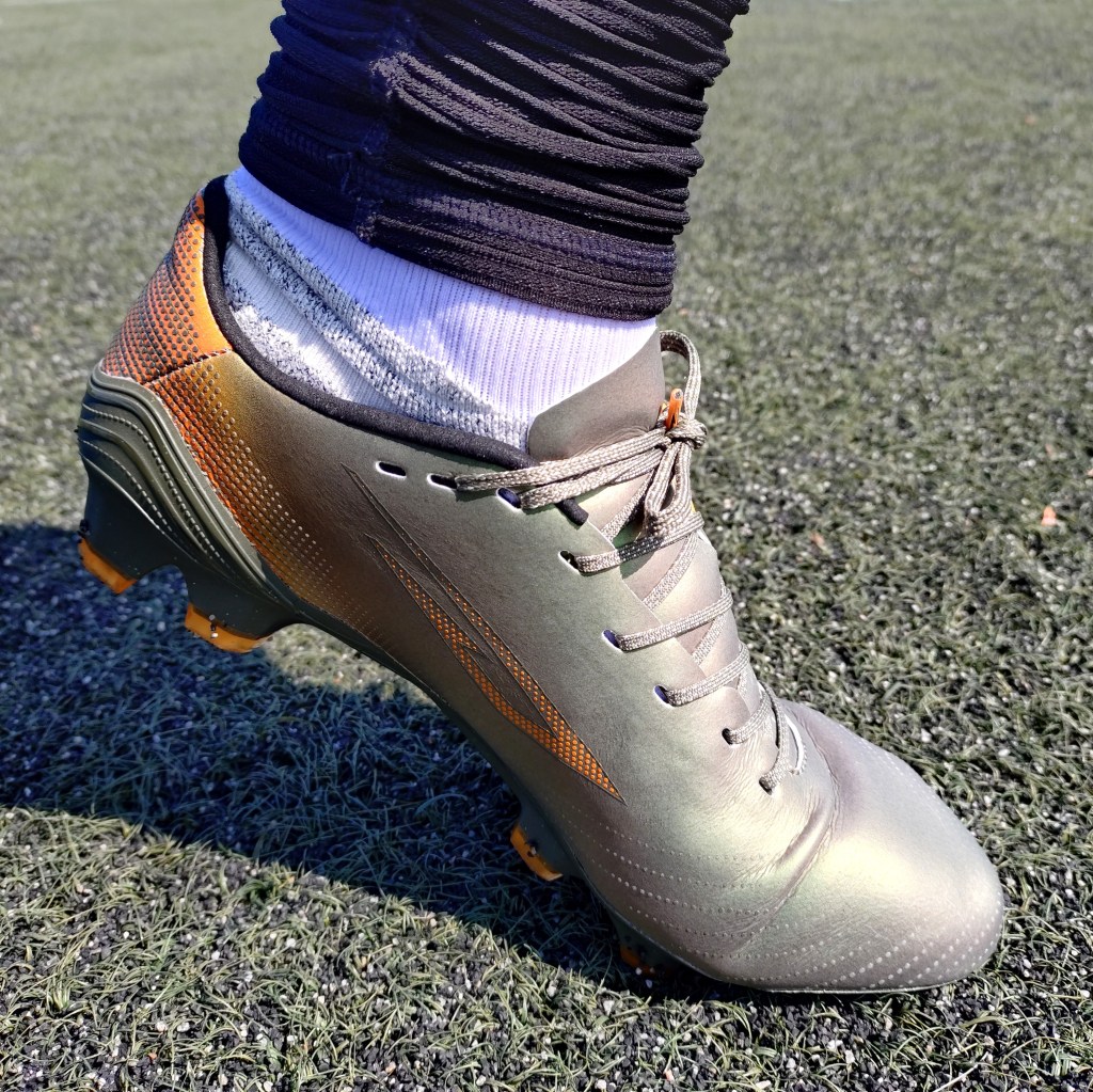 What I mean by this is that some brands make their boots “feel” faster by deliberately making the forefoot studs different lengths, which does lean the body in certain directions when taking off, but the tradeoff requires players to get used to the uneven stud lengths, and landing can occasionally feel awkward. I personally prefer what Sokito has done in the forefoot in making the studs a similar size and length. It is more reliable in my opinion, as there is nothing to adjust to.